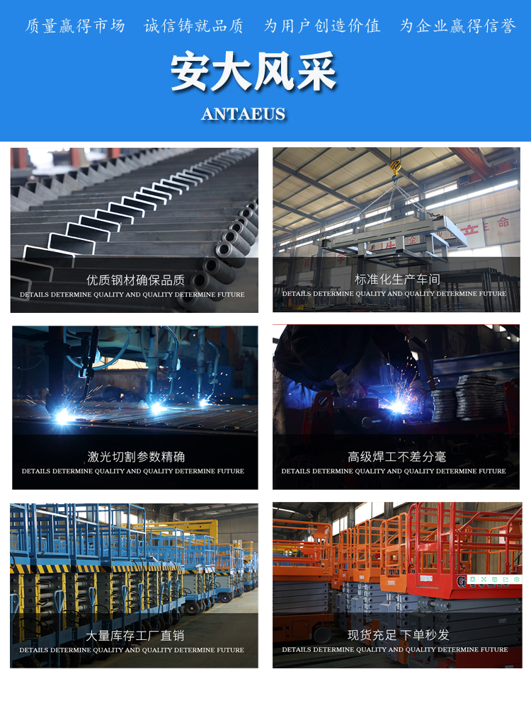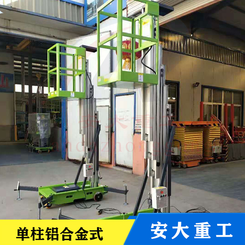 鋁合金式升降平臺(tái)采用高強(qiáng)度優(yōu)質(zhì)鋁合金材料,具有造型美觀、體積小、重量輕、升降平穩(wěn)、安全可靠等優(yōu)點(diǎn),平臺(tái)自身佩戴保險(xiǎn)鋼繩和安全保護(hù)裝置,并能夠上下操作,廣泛用于工廠、賓館。