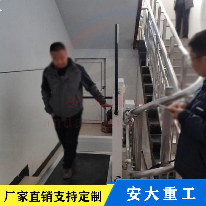 斜挎式無障礙升降平臺(tái)按其運(yùn)行方向分曲線型和直線型兩種。直線型多采用齒輪齒條式驅(qū)動(dòng)機(jī)構(gòu),沿樓梯做上升和下降,只能作直線運(yùn)行不能轉(zhuǎn)彎,傾斜角一般不大于35度,適用于樓層較低