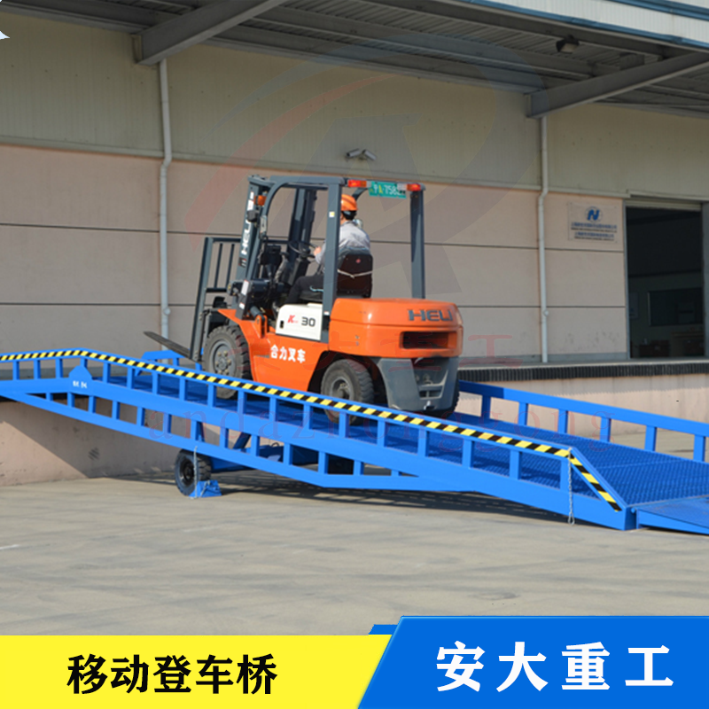 移動(dòng)式登車橋是與叉車配合使用的貨物裝卸輔助沒備,可根據(jù)汽車車用的高低調(diào)節(jié)高度,叉車可以直接通過本設(shè)備駛?cè)胲噹麅?nèi)部進(jìn)行貨物的批量裝卸,需單人作業(yè),即可實(shí)現(xiàn)貨物的快速裝卸。它使企業(yè)減少大量勞動(dòng)力,提高工作效率,獲取經(jīng)濟(jì)效益。